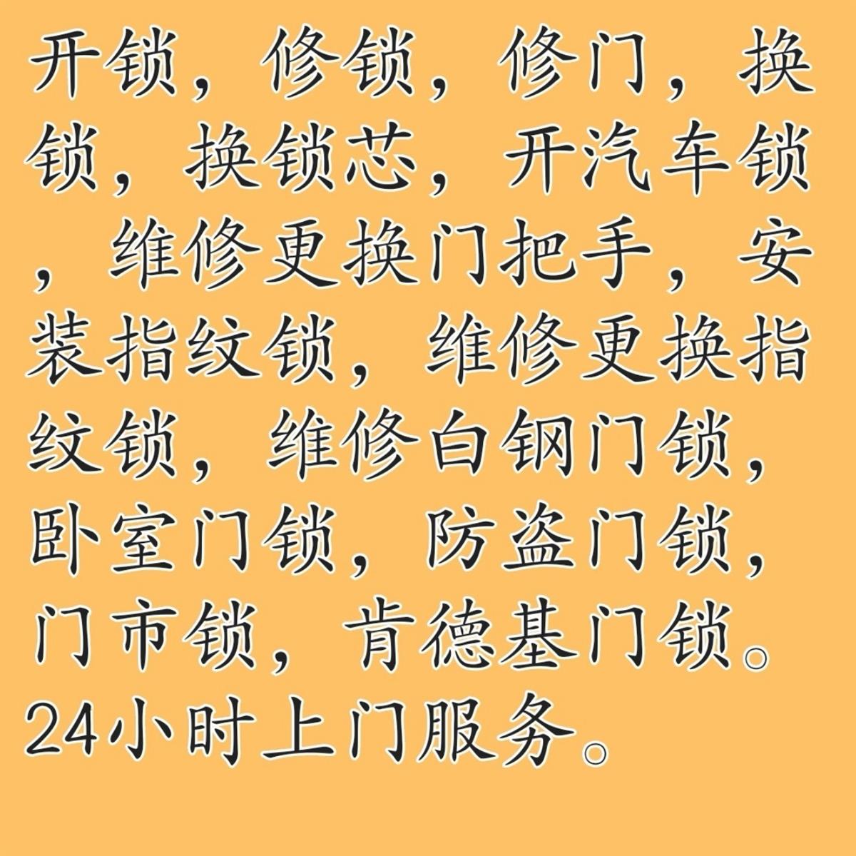 開鎖,修鎖,修門,換鎖,換鎖芯,開汽車鎖,維修更換門把手,安指紋鎖,安裝指紋鎖,指紋鎖安裝,維修白鋼門鎖,臥室門鎖,防盜門鎖,門市鎖,肯德基門鎖。24小時上門服務,電話13766069151